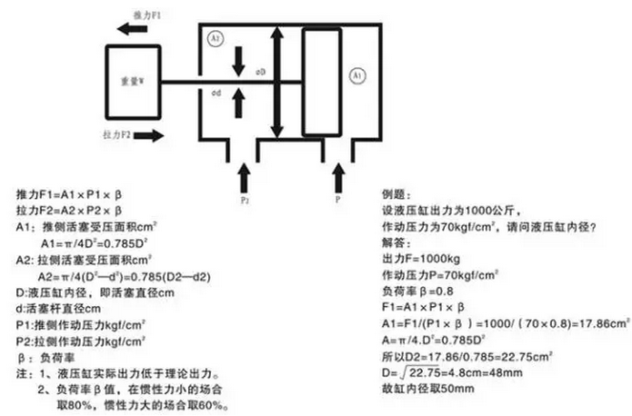 由力的計(jì)算公式可知: F = PS(P:壓強(qiáng); S:受壓面積—由油缸的缸徑、桿徑?jīng)Q定)